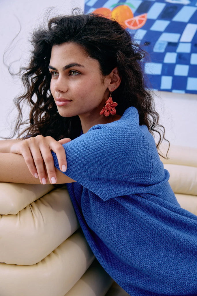 Delicately sculpted floral earrings in woven texture with metallic detail. A romantic summer statement.
