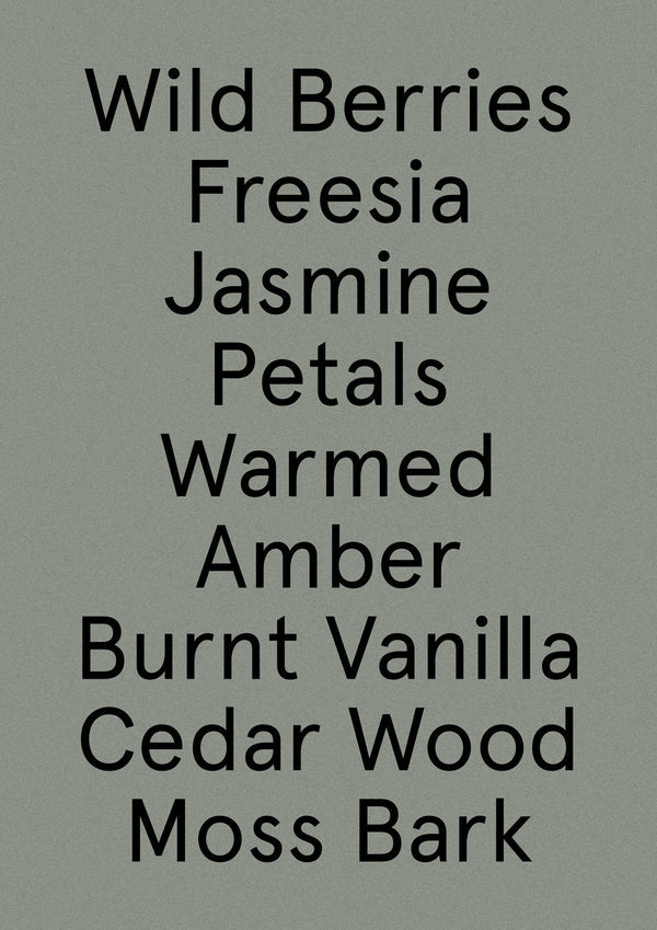 Discover the unexpected with this addictive duo of light and dark. A juxtaposing bright aromatic top of lush wild berries, blooming freesia and jasmine, contrasted with a heart of warmed amber. Follow the ever-shifting landscape to reveal the dark yet complex base of lingering cedar woods with wild moss bark to add an earthy hint, combined with burnt vanilla bean.