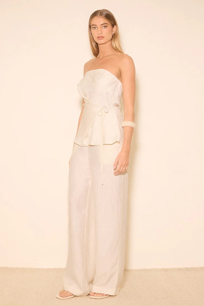 - Functional wrap closure with rouleaux tie to cinch at waist
