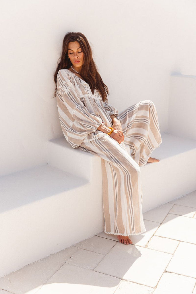 The natural stripe design is timeless and versatile, whether you style it with denim for casual days or pair it perfectly with the matching Palmas Pants for a head-turning co-ord look. Lightweight and breathable, it’s ideal for transitioning between seasons while keeping your look polished and free-spirited.