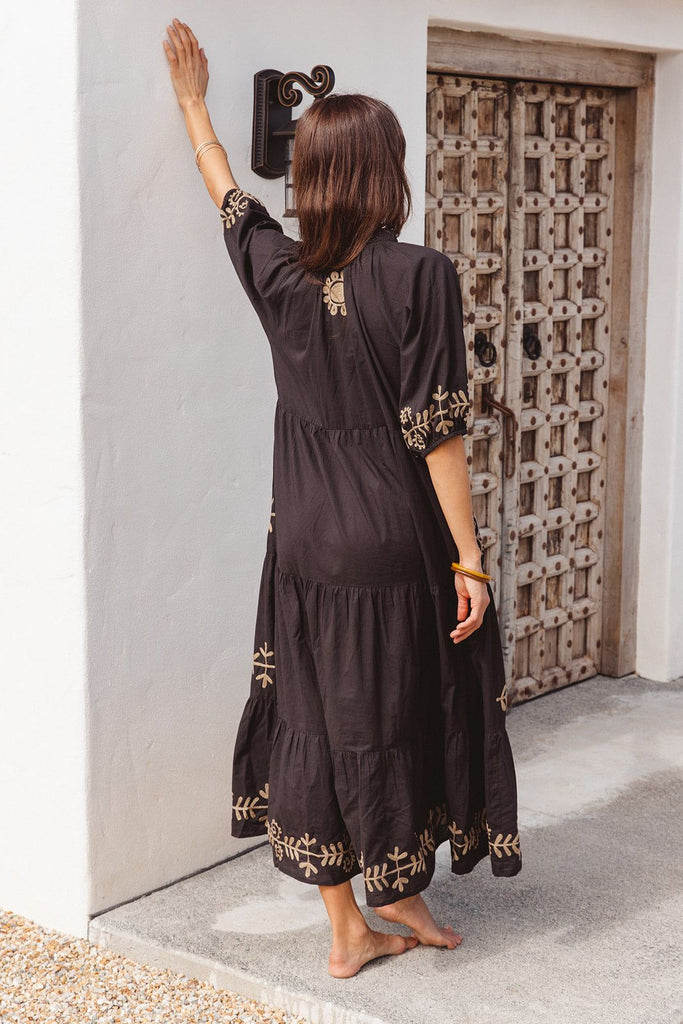 Julia Dress - Black with Imperial Aari Embroidery
